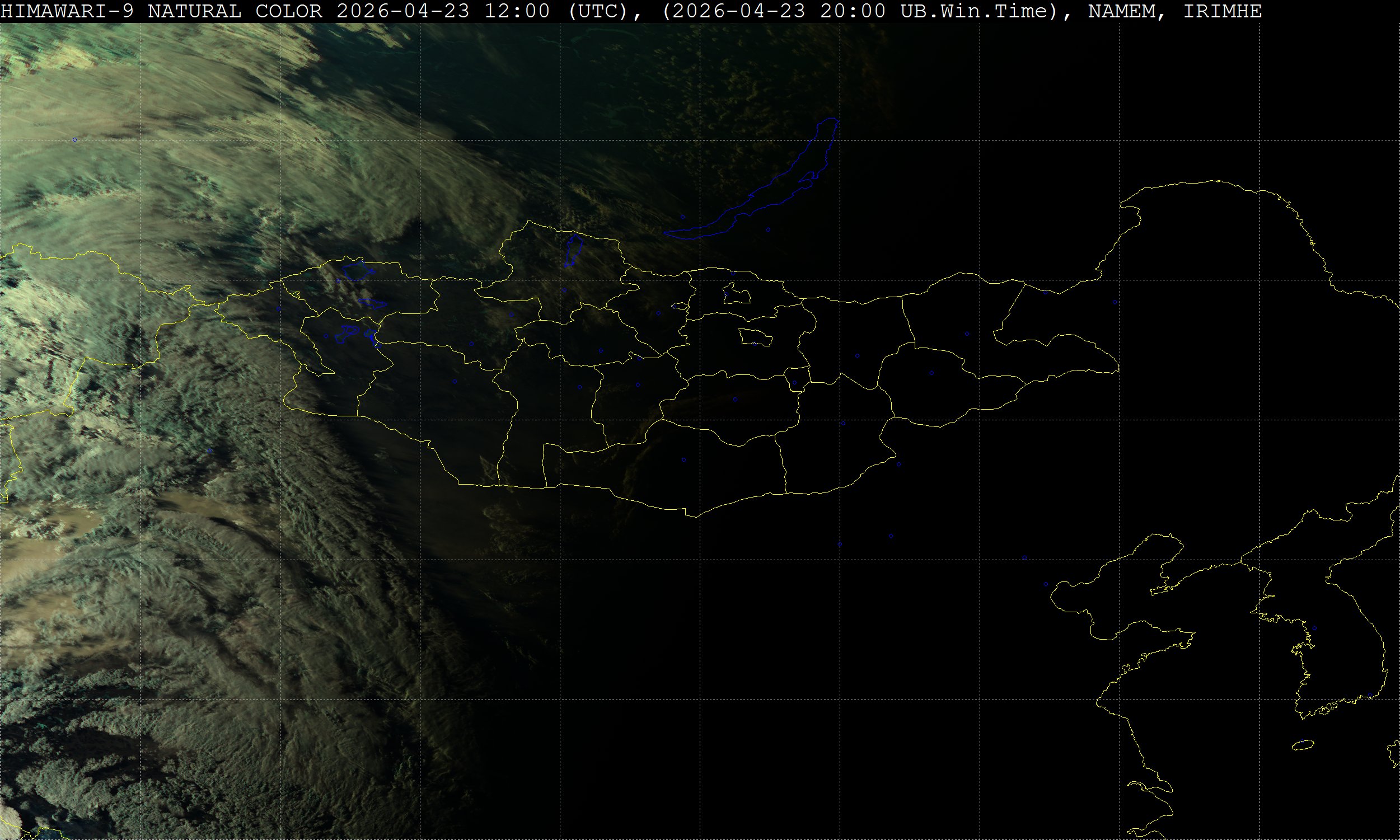HIMAWARI-9 Байран хиймэл дагуулын їїлний хєдєлгєєнт зураг (Natural Color, 2km)